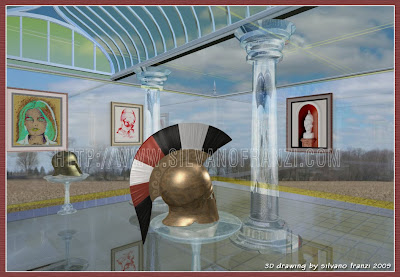 Il 1° quadro "RITRATTO A PENNA A SFERA RIVISITATO AL COPUTER" è mio Il 2° "RITRATTO" è mio Il 3° "Busto della dea Athena", gli Elmi, Oplita e Greco, sono disegni 3D di Graziano Perduccizzi.